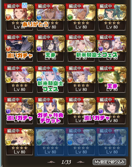 すり抜けでカグヤ(キャラ)来てくれました。感謝。 上の画像にあるように、こちらも引けたので大満足。 チュートリアルSSRだったので、感慨深い&嬉しいねぇ。 こちらはミッションで砂をもらえたので、一人目! いつもサブメンでお世話になってます。 そして最後の最後に、きんぴかのあれが!!! やったー!!!!! そんな感じ。 ではでは、良いお年を〜〜〜〜〜 |