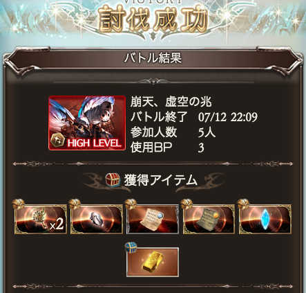 お空の旅。 土有利のやつ。 何を間違ったか、Bクラスへ昇格してしましました。 (全部武器掘りのせい) 報酬取り切ったんですが、 ドロったのはこれ一つだけ。 土は弱々でつらひ… これは夏のgty 石ほぼ溶けちゃったよ。 そんな感じ。 |